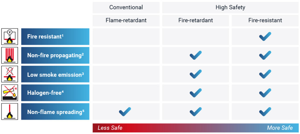 1Test in accordance with EN 50200 with Annex E; IEC 60331-1/-2/-21/-23/-25; BS 6387